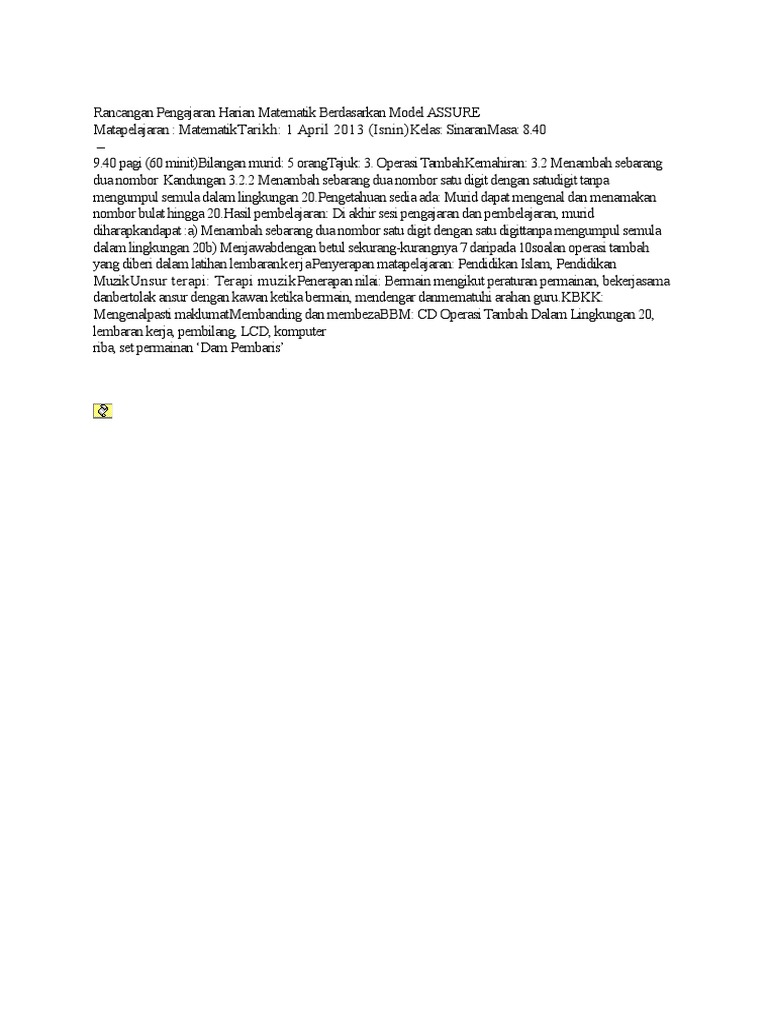 Rancangan Pengajaran Harian Prasekolah Matematik Operasi Tambah / Check spelling or type a new query.